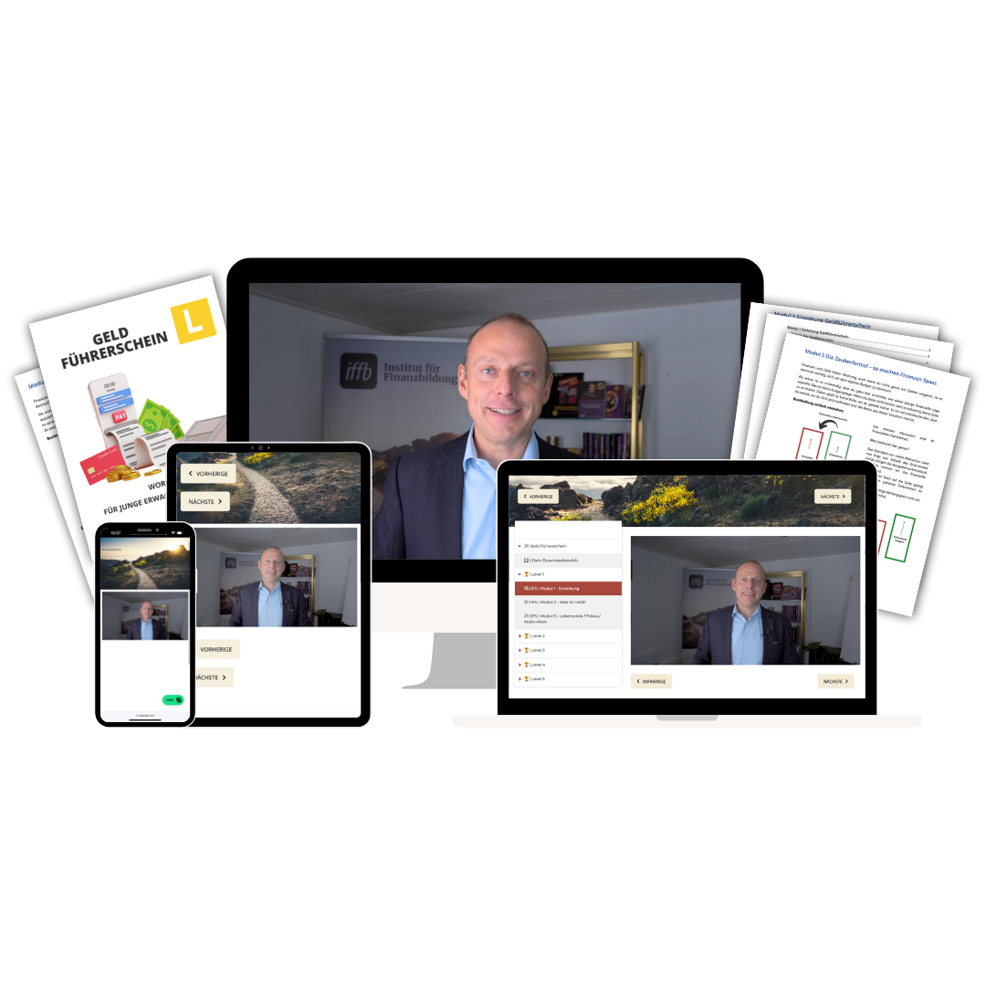 Der "Geldführerschein" ist Dein erster Schritt in diese Welt der finanziellen Unabhängigkeit und Freiheit. Mit dem "Geldführerschein" erhältst du nicht nur Zugriff auf essenzielles Finanzwissen, sondern auch auf Strategien, die dein Leben verändern werden.